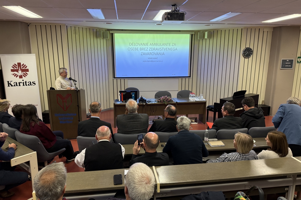 V Glazerjevi dvorani Univerzitetne knjižnice Maribor je danes potekal strokovni posvet ob 20. obletnici Ambulante Karitas za osebe brez zdravstvenega zavarovanja s posvetovalnico. Dogodek je združil zdravnike prostovoljce, predstavnike javnih ustanov, občine, ministrstva in širše skupnosti, ki so ob obletnici osvetlili izzive pri oskrbi nezavarovanih bolnikov in pomen humanitarnega dela prostovoljcev.